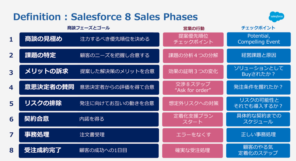 セールスフォース・ジャパンでは以下のように案件管理をしているといわれています。